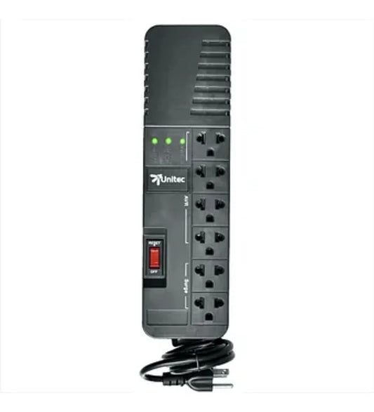 REGULADOR DE VOLTAJE 6 TOMAS | 1000W | PROTECCIÓN ELÉCTRICA PARA PC Y EQUIPOS ELECTRÓNICOS