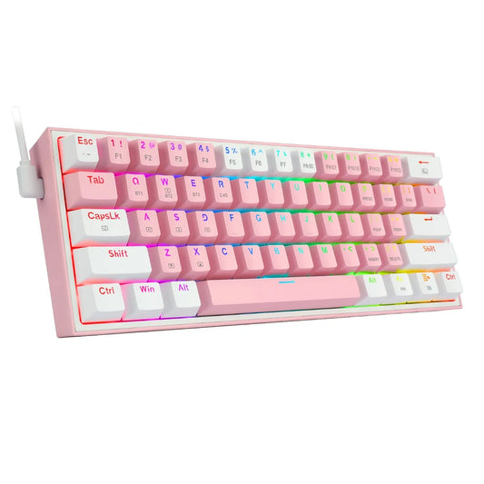 Teclado Mecánico Redragon K616-RGB-SP PW Fizz Pro 60% / Switch Red / Rosado-Blanco