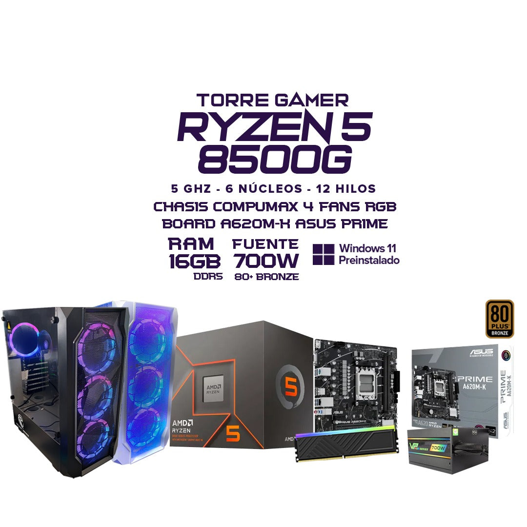 PC Gamer Ryzen 5 8500G | 16GB DDR5 | Hasta 5.0 GHz | Chasis RGB | Elige Monitor 22” / 24” / 27” | Elige SSD 512GB / 1TB | Combo Teclado y Ratón