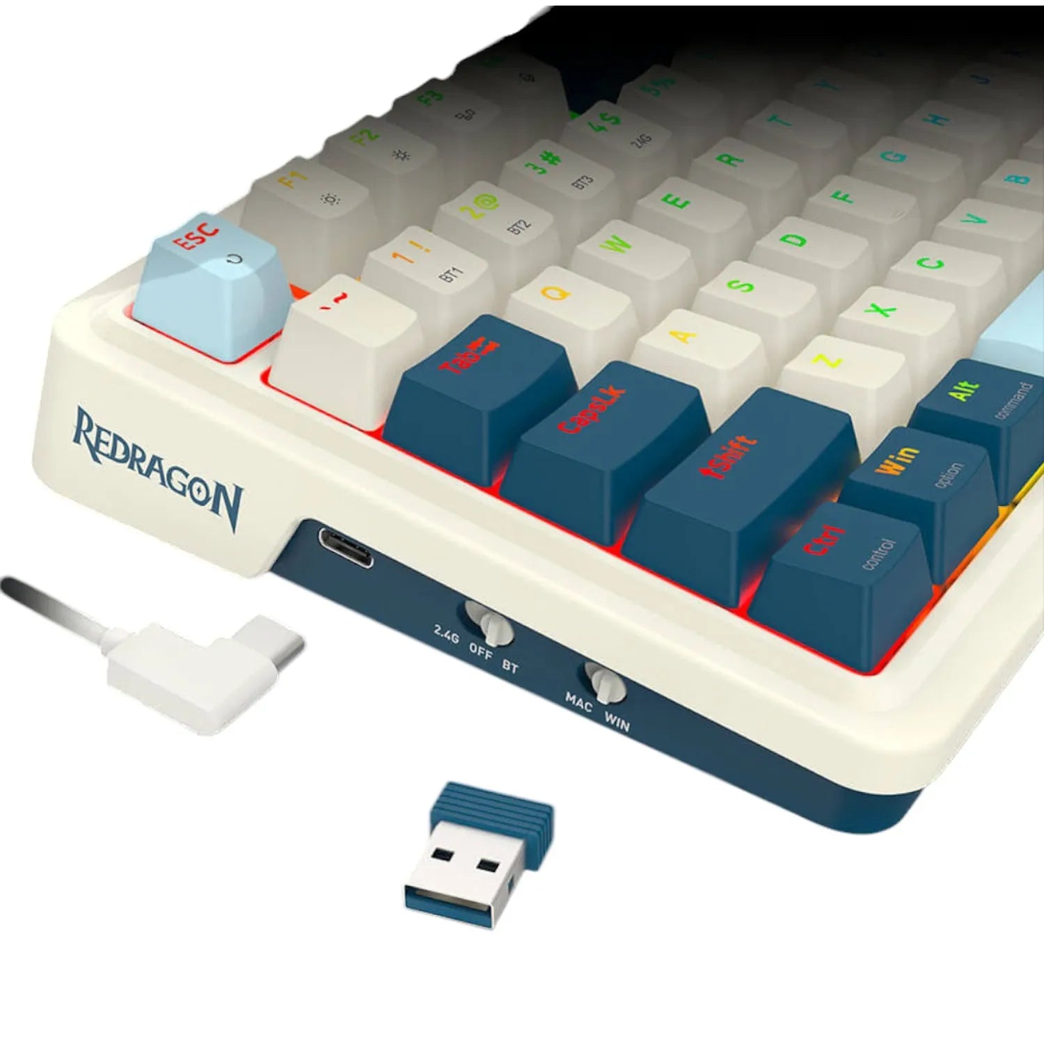 Teclado Mecánico Redragon Eisa Pro K686WB RGB PRO SP / Switch Red / 96% / Inalámbrico / Blanco-Azul