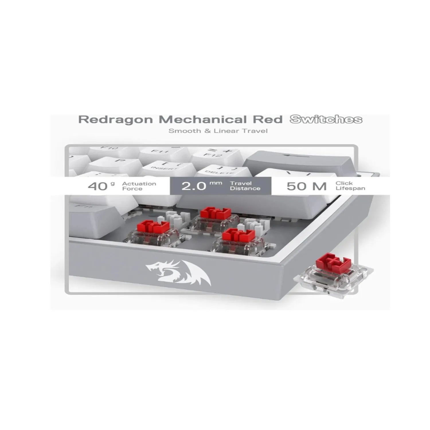 Equipado con switches Red lineales, ofrece una respuesta suave y silenciosa, ideal para juegos competitivos y escritura rápida.